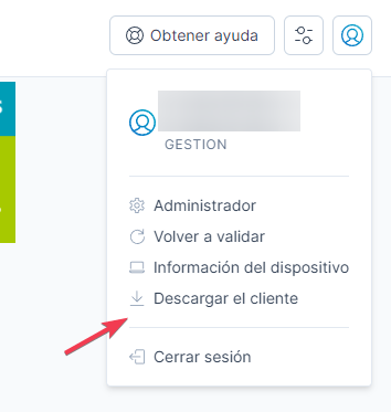 Si por algún motivo tu navegador no te ofrece instalar el cliente AppsAnywhere (por ejemplo, porque tienes un bloqueador de popups) puedes descargarlo desde el menú que se muestra pinchando sobre su perfil de usuario (arriba a la derecha).